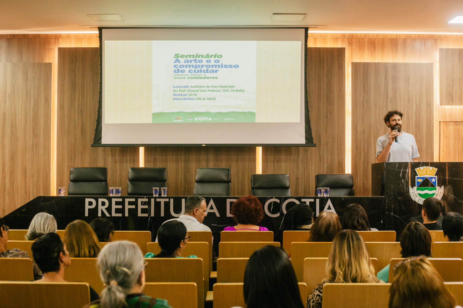 Na terça-feira (10/10), as Secretarias de Desenvolvimento Social, de Saúde e de Conselho Municipal dos Direitos da Pessoa Idosa (CMDPI), realizaram a primeira palestra do Seminário ‘A Arte e Compromisso do Cuidar – Pessoas Idosas e seus Cuidadores’. A estreia aconteceu no Auditório do Paço Municipal, com o intuito de capacitar cuidadores de pessoas idosas, com foco em cuidadores não profissionais que, em razão do contexto familiar, assumiram a responsabilidade de cuidar de uma pessoa idosa.