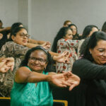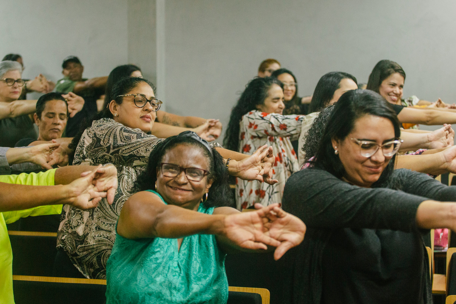 O CMDPI procurou especialistas que possam ajudar a melhorar o cuidado com os idosos, oferecendo informações sobre envelhecimento e longevidade para cuidadores e outros interessados em prestar assistência de qualidade aos idosos. Advento, o professor Bruno, que trabalha com práticas integrativas e complementares a saúde, fez uma dinâmica de alongamentos que auxiliam a articular a mente e o corpo.